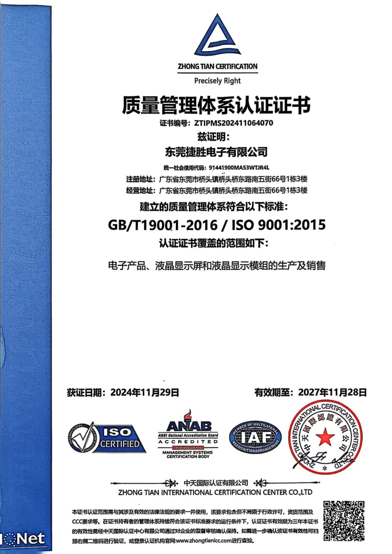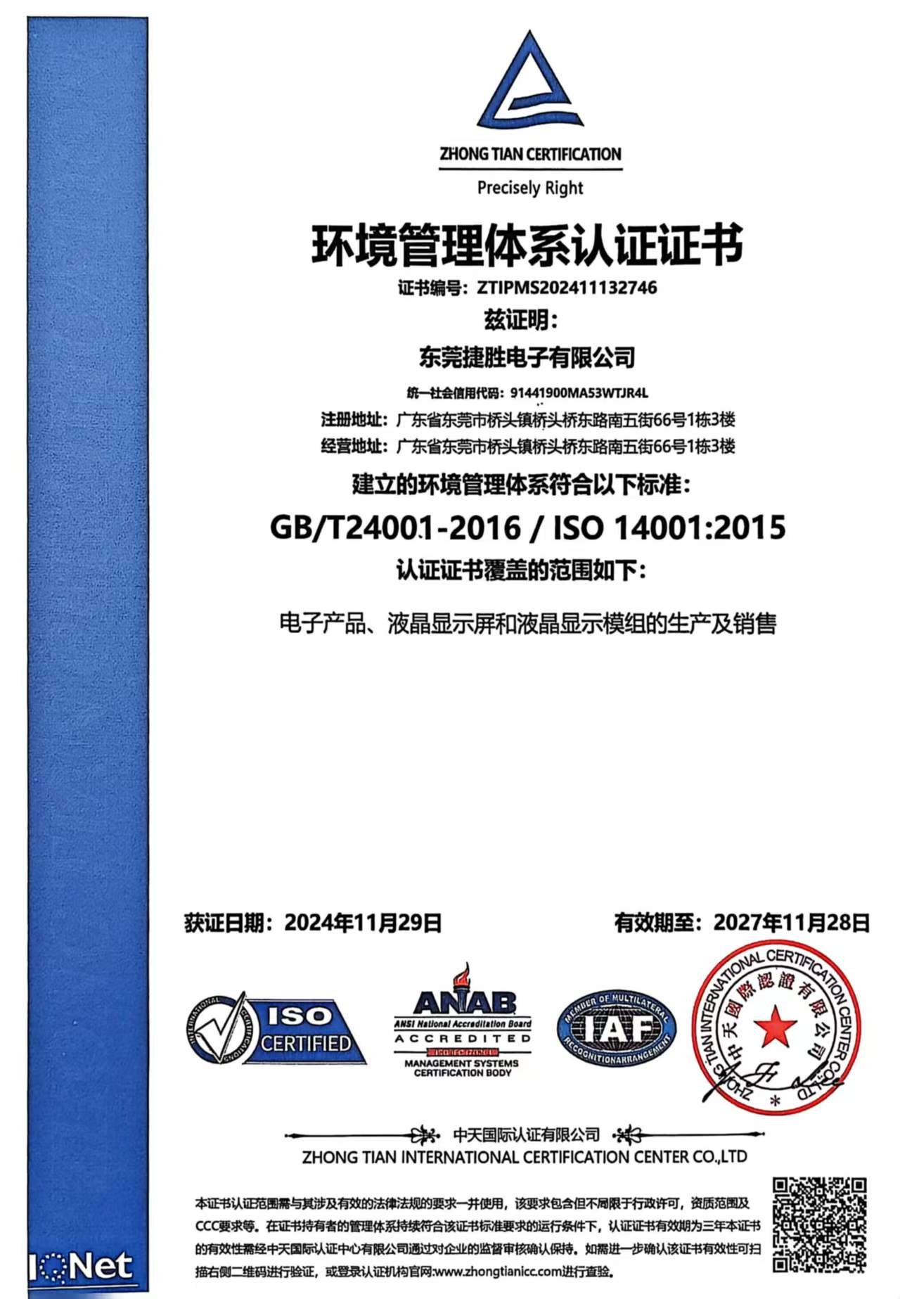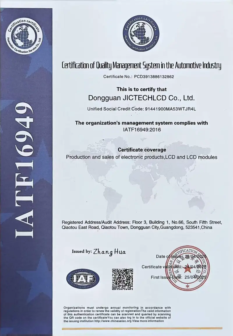Jictech has obtained ISO 9001 quality management system certification, ISO 14001 environmental management system certification, and IATF 16949 automotive quality system certification.