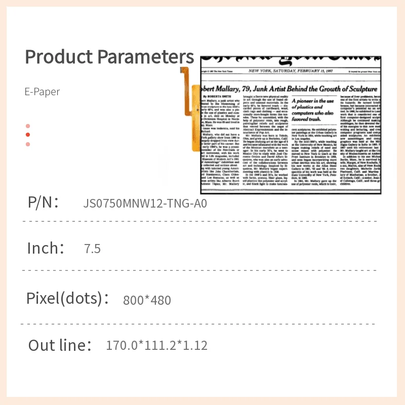 • 7.5‑inch E‑Paper display module (SE0750MNW11‑TNG‑A0)